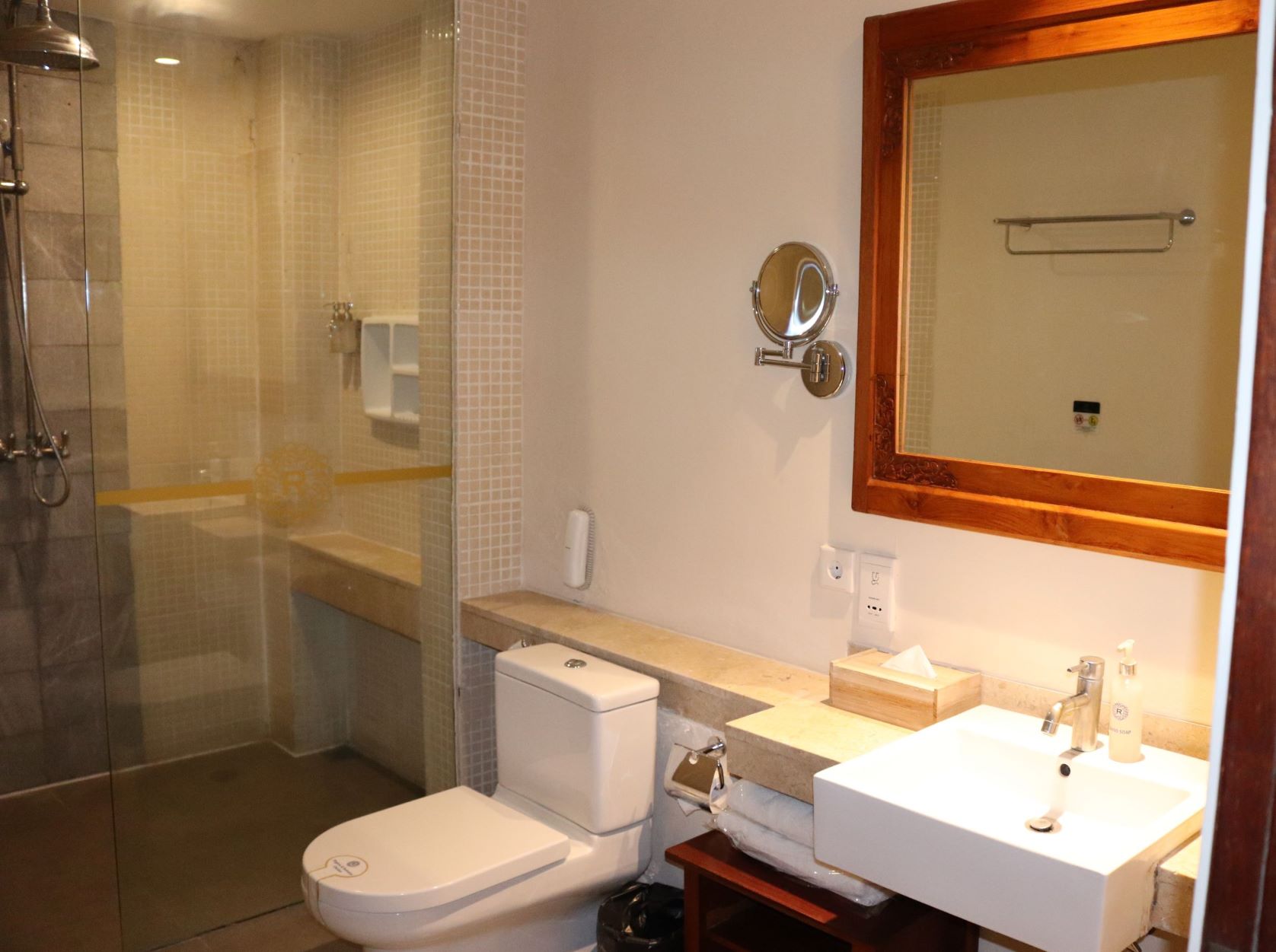 ONE BEDROOM SUITE FEATURES: A charming suite that draws attention to the aesthetics of modern retro Balinese artistry. This suite can sleep up to 4 Adults and is designed for comfort as well as privacy. The 100m2 One Bedroom Suite is a restful environment that soothes the senses following days experiencing the sights and sounds of Bali. The suite features a separate living room and an additional bathroom with a washing machine and dryer. There is a kitchenette with an Electric Stove, Microwave, Toaster, Refrigerator, Water Dispenser, utensils and cutlery for those needing to cook simple meals. Great for families and friends without compromising on privacy. It also has it’s own private terrace with sofa/lounger for a breath of fresh air. The suite also features a Walk-in shower, AC, IDD Telephone, Televisions with International Channels, Free Wi-Fi, Hairdryer, Coffee & Tea Making Facilities, Electronic Safe, Bedside Control Panel, Bathrobes, Slippers and a Fire Extinguisher.